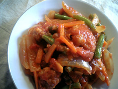 2.玉ねぎ・いんげん・にんじんを適当な大きさに切る